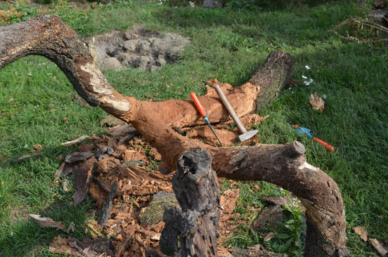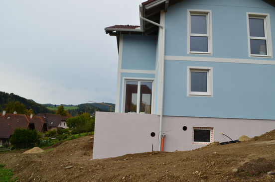 Der etwa 2 m hohe Unterbau das Wintergartens ist mit Schotter gefüllt, was eine hervorragende Drainageschicht ergibt. Darauf liegt eine ca. 80cm hohe Schicht aus einfacher Gartenerde. So hat der Wintergarten einen direkten Kontakt zum lebenden Mutterboden. Erst darauf liegt das bereits beschriebene Gemisch aus Erde, Sand- und Lehmpulver.